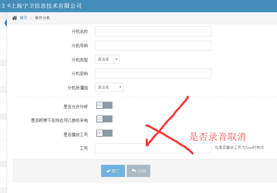 原分机配置中的是否录音选项取消