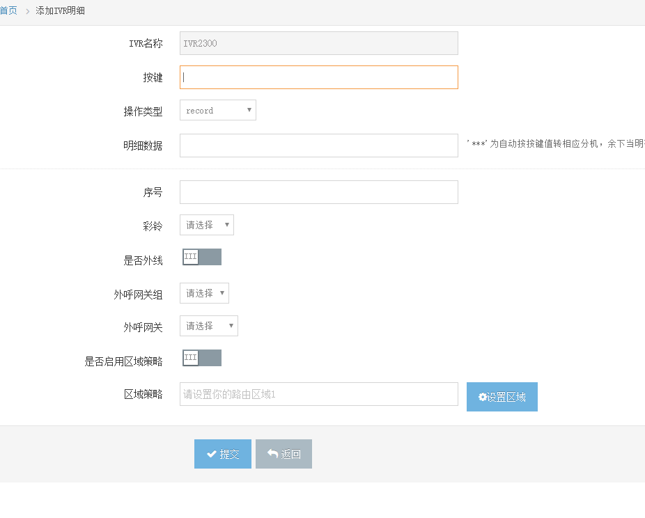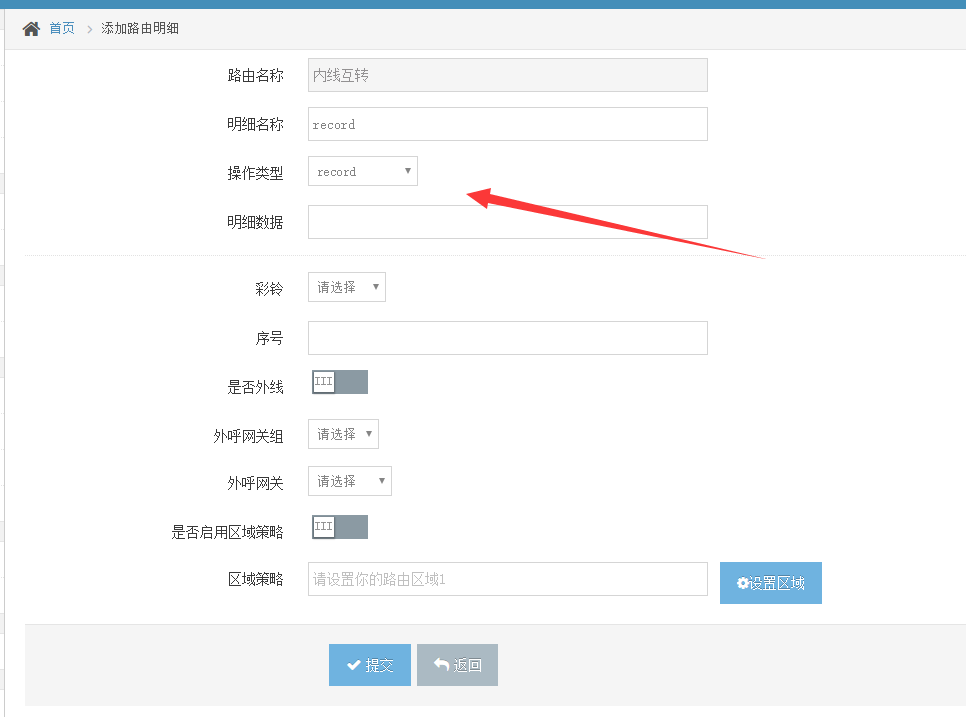路由明细中配置录音