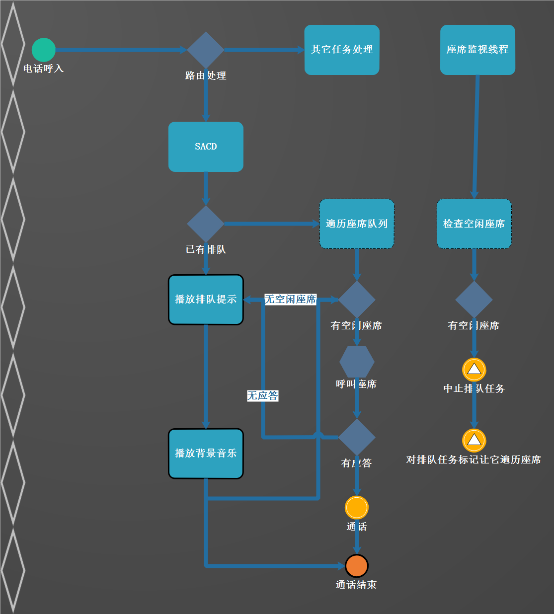 之前我们公布了新版本中要发布一个SACD功能,它是把以前统一在FSGUI的FIFO中的呼入队列提取了出来后,进行了ACD功能的增强,从而让它更灵活、更强大。下面我们看看它的特点吧: