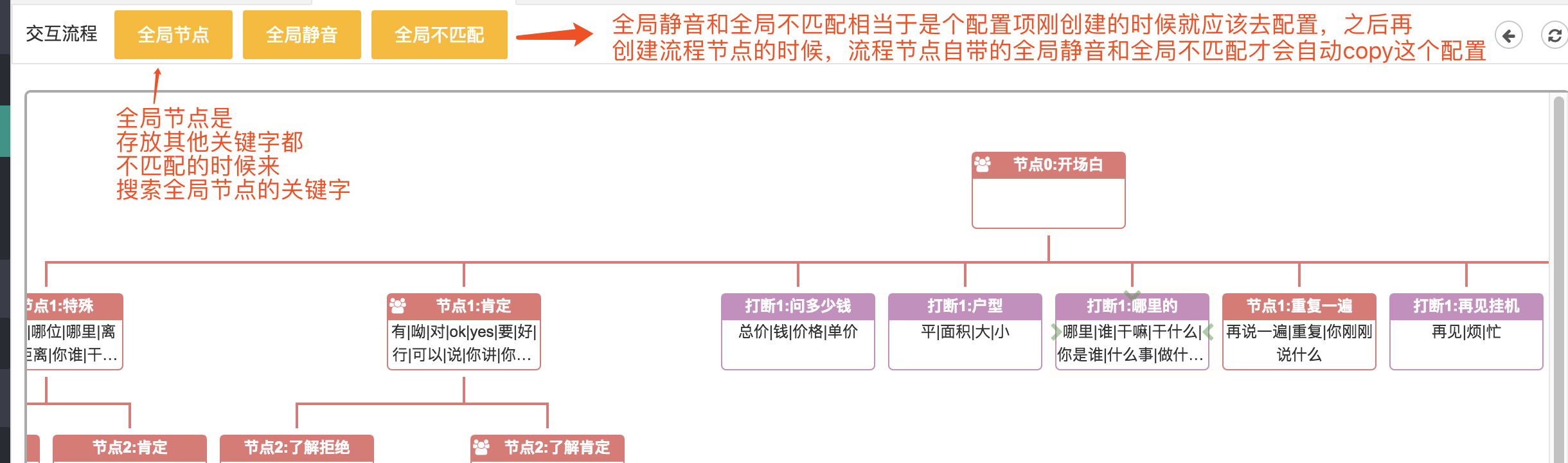 创建流程模板:会自动生成1.开场白,2.全局不匹配,3.全局静音。