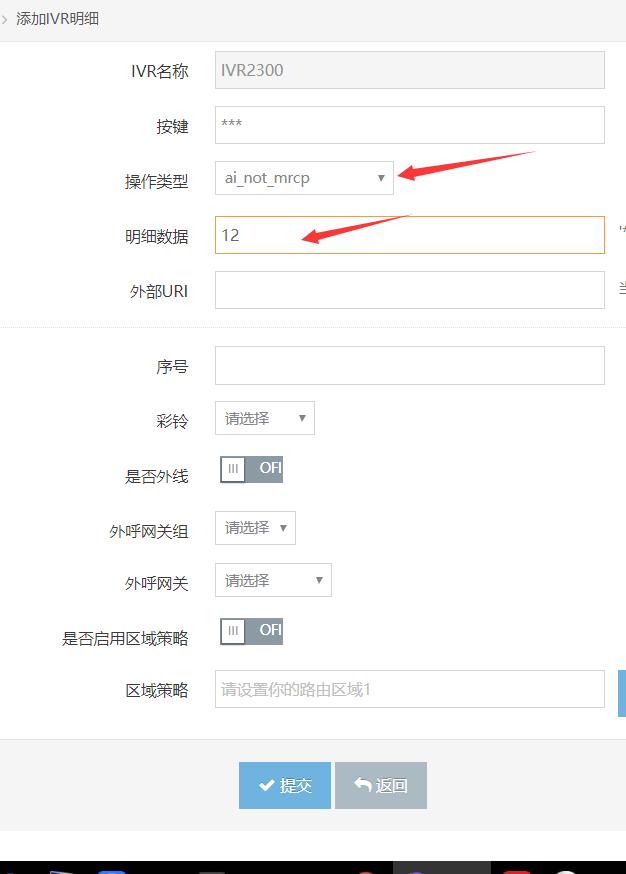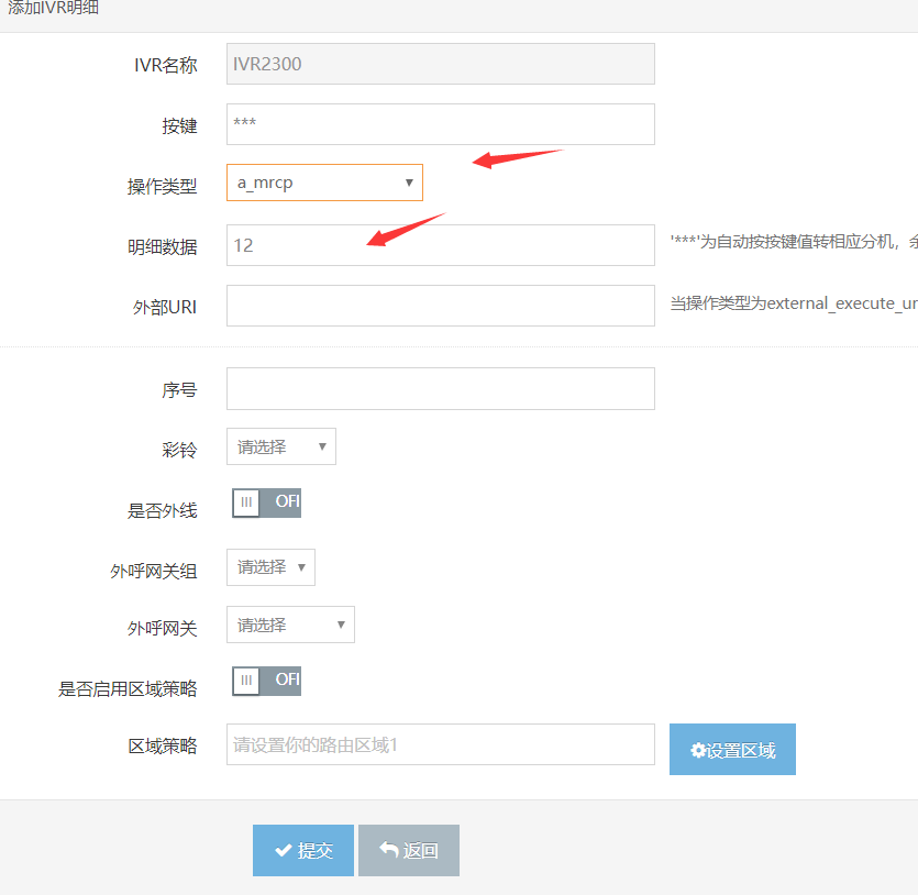 其次,在FSGUI的路由明细或IVR明细中按如下配置